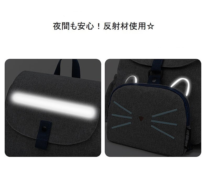 バッグの正面と猫耳に反射材を使用しているから夜間も安心☆